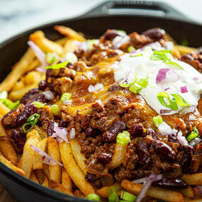 Fries topped with the house cooked chili, grilled chicken, chives and cheese. Grab a fork, or eat with your fingers! I won't judge, promise. Named after the Lilypad's co-owner and resident Bard, Cheesy Chips!